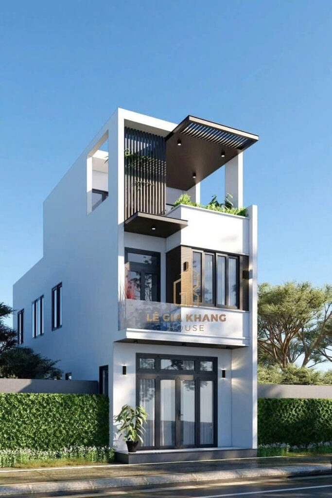 Nhà xây 1 trệt 1 lầu và 1 tum sân thượng.