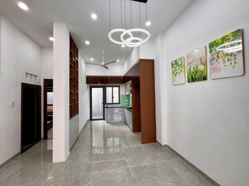 Nhà xây 1 trệt 2 lầu công năng: 4 phòng ngủ, 2 nhà vệ sinh, sân thượng, sân đậu xe hơi 7 chỗ.