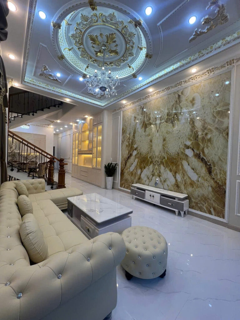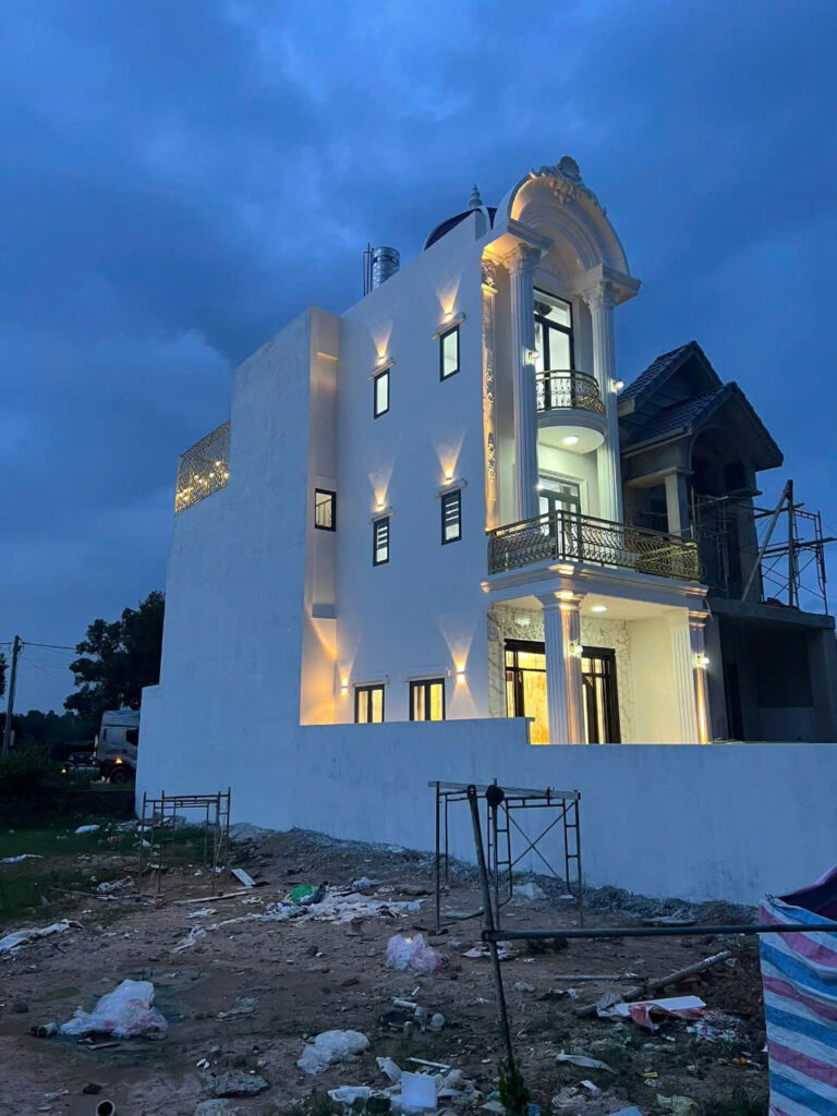 Nhà xây 1 trệt 2 lầu theo phong cách hoàng gia rất sang trọng.